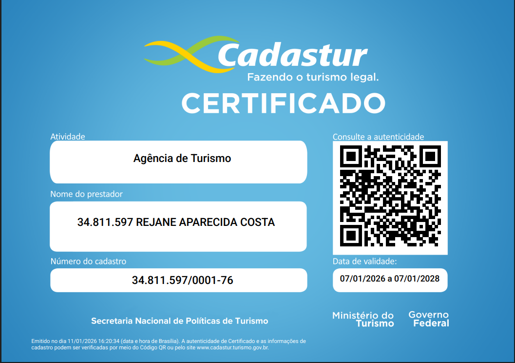 Na Delta Turismo MG, operamos sob o registro oficial do Ministério do Turismo.